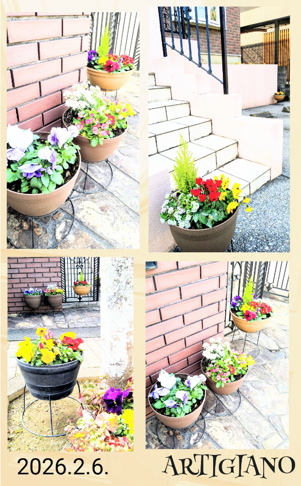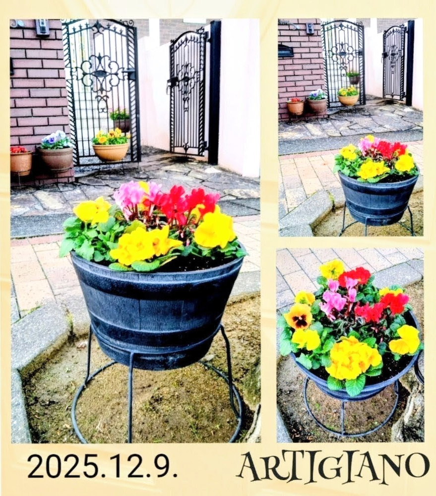 花の寄せ植え・シクラメン・プリムラジュリアン・パンジー