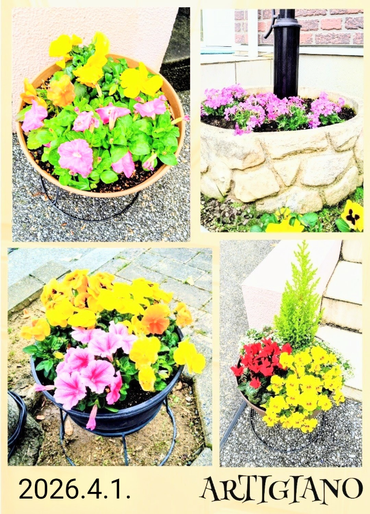 🆕花の寄せ植え・満開状態/新たに芝桜&ペチュニア